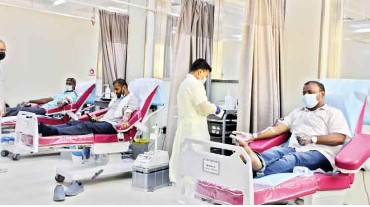 ഇറാഖ് അധിനിവേശ വാർഷികത്തോടനുബന്ധിച്ച് ആരോഗ്യമന്ത്രാലയം നടത്തിവരുന്ന 'എന്നും ഒരുമിച്ച്' രക്തദാന കാമ്പയിനിെൻറ ഭാഗമായാണ് ക്യാമ്പ് സംഘടിപ്പിച്ചത്.
