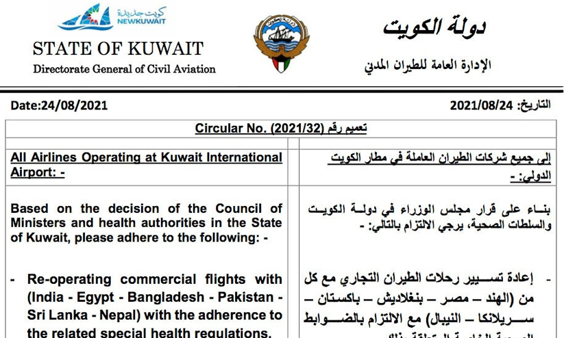 വ്യോമയാന വകുപ്പിന്റെ സർക്കുലർ ഇറങ്ങി; ഇന്ത്യയിൽനിന്ന് കുവൈത്തിലേക്ക് വിമാനങ്ങൾ അടുത്ത ദിവസം മുതൽ