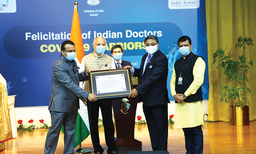 കുവൈത്ത് സിറ്റി: കോവിഡ് പ്രതിരോധത്തിന് ഉജ്ജ്വലമായി പ്രവർത്തിച്ച ഇന്ത്യൻ ഡോക്ടർമാരെ കുവൈത്തിലെ ഇന്ത്യൻ എംബസിയും ഇന്ത്യൻ പ്രഫഷനൽ നെറ്റ്വർക്കും ഇന്ത്യൻ ഡോക്ടേഴ്സ് ഫോറം കുവൈത്തും ചേർന്ന് അനുമോദിച്ചു.