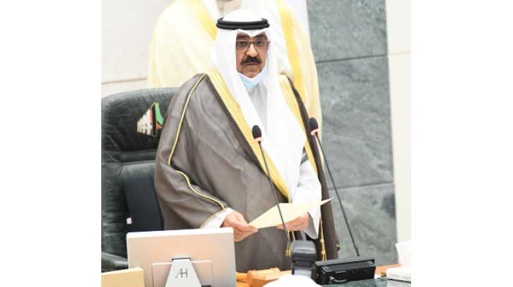 കുവൈത്ത് കിരീടാവകാശിയായി നിയമിക്കപ്പെട്ട ശൈഖ് മിശ്അൽ അൽ അഹ്മദ് അസ്സബാഹ് പാർലമെൻറിൽ അഭിവാദ്യം ചെയ്യുന്നു