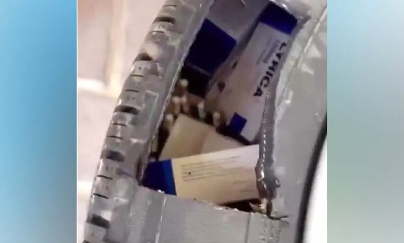 text_fieldsകാറിന്റെ ടയറിൽ ലഹരി ഗുളിക ഒളിപ്പിച്ച നിലയിൽ