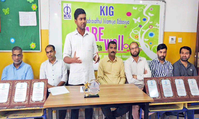 കുവൈത്ത് സിറ്റി: കെ.ഐ.ജിക്ക് കീഴിലുള്ള അബ്ബാസിയ അൽ മദ്റസത്തുൽ ഇസ് ലാമിയ മദ്റസയിൽ നിന്നും ഏഴാം ക്ലാസ് പഠനം പൂർത്തിയാക്കിയ വിദ്യാർഥികൾക്ക് അഭിനന്ദനവും യാത്രയയപ്പും സംഘടിപ്പിച്ചു. മദ്റസ ഓഡിറ്റോറിയത്തിൽ നടന്ന പരിപാടിയിൽ പി.ടി.എ പ്രസിഡന്റ് വി.കെ. അബ്ദുൽ നാസർ അധ്യക്ഷത വഹിച്ചു. വിദ്യാർഥികളും രക്ഷിതാക്കളും പങ്കെടുത്തു. കെ.ഐ.ജി എജുക്കേഷൻ ബോർഡ് ഡയറക്ടർ ഡോ.അലിഫ് ശുകൂർ മുഖ്യ പ്രഭാഷണം നടത്തി. കെ.ഐ.ജി അബ്ബാസിയ ഏരിയ പ്രസിഡന്റ് മുനീർ മഠത്തിൽ, പി.ടി.എ അംഗങ്ങളായ ലത്തീഫ്, നവാസ് എസ്.പി, വിദ്യാഭാസ ബോർഡ് സെക്രട്ടറി സി.പി. നൈസാം, ആക്ടിങ് പ്രിന്സിപ്പല് കെ.എം. അൻസാർ എന്നിവർ വിദ്യാർഥികൾക്ക് ആശംസകൾ അർപ്പിക്കുകയും മെമന്റോ കൈമാറുകയും ചെയ്തു.