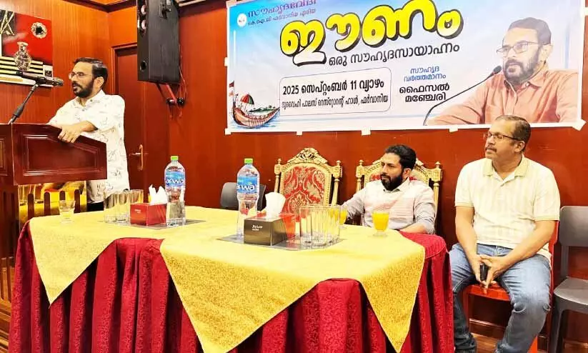 text_fieldsകുവൈത്ത് സിറ്റി: കേരള ഇസ്ലാമിക് ഗ്രൂപ് (കെ.ഐ.ജി)ന്റെ ആഭിമുഖ്യത്തിൽ പ്രവർത്തിക്കുന്ന സൗഹൃദവേദി ഫർവാനിയ ഏരിയ ‘ഈണം’ എന്ന തലക്കെട്ടിൽ സൗഹൃദസംഗമം സംഘടിപ്പിച്ചു. ഫർവാനിയ ദുവൈഹി പാലസിൽ നടന്ന പരിപാടിയിൽ കെ.ഐ.ജി വൈസ് പ്രസിഡന്റ് ഫൈസൽ മഞ്ചേരി സൗഹൃദസന്ദേശം നൽകി. വൈവിധ്യങ്ങളെ ഉയർത്തിക്കാട്ടി മനസ്സിൽ വൈരം കുത്തിവെക്കാൻ പലരും ഒളിഞ്ഞും തെളിഞ്ഞും ശ്രമിക്കുന്ന ഈ കാലഘട്ടത്തിൽ എല്ലാരും ഒരുമിച്ചിരിക്കുന്ന കൂട്ടായ്മകൾ കാലഘട്ടത്തിന്റെ ആവശ്യമാണെന്നും അദ്ദേഹം ഉണർത്തി. ഓണം ബാക്കിയാക്കുന്ന നന്മകൾ സഹോദര്യത്തിന്റേതാണെന്നും അദ്ദേഹം പറഞ്ഞു.