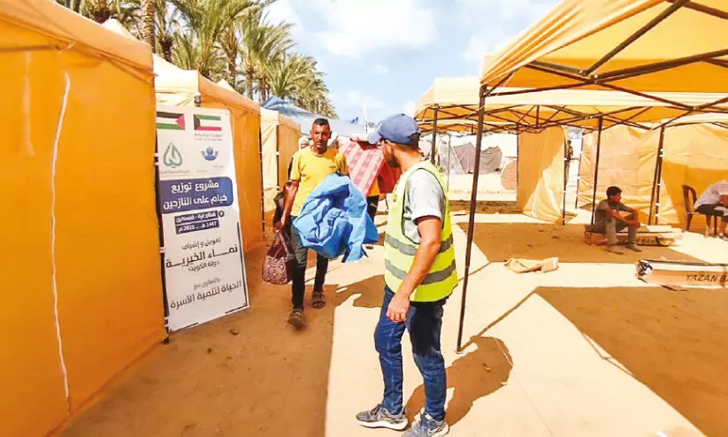 വടക്കൻ ഗസ്സയിലെ ഫലസ്തീൻ കുടുംബങ്ങളെ പാർപ്പിക്കുന്നതിനായി 100 ലധികം കൂടാരങ്ങൾ നിർമിക്കുമെന്ന് നമാ ചാരിറ്റി ചീഫ് എക്സിക്യൂട്ടീവ് മർസൂഖ് അൽ ഒതൈബി പറഞ്ഞു. ഇതിനായുള്ള ആദ്യ ഘട്ട പ്രവർത്തനം ആരംഭിച്ചു. ആയിരക്കണക്കിന് ഫലസ്തീനികൾക്ക് അടിയന്തര സഹായമെന്ന നിലക്കാണിത്.