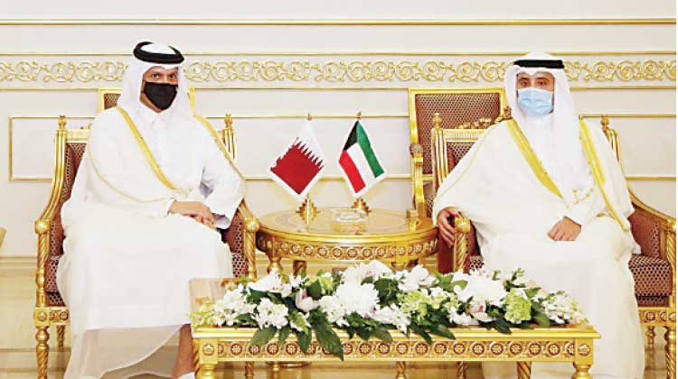 കുവൈത്ത് വിദേശകാര്യ മന്ത്രിയുടെ ഉച്ച വിരുന്നിൽ ശൈഖ് മുഹമ്മദ് ബിൻ അബ്ദുറഹ്മാൻ അൽതാനി സംബന്ധിച്ചു. കുവൈത്ത് വിദേശകാര്യ മന്ത്രാലയത്തിലെ പ്രോേട്ടാകോൾ കാര്യ സഹമന്ത്രി ദാരി അർജാൻ അൽ അർജാൻ, ജി.സി.സി കാര്യ അംബാസഡർ നാസർ അൽ മിസയ്യാൻ, വിദേശകാര്യ മന്ത്രാലയത്തിലെ ഒാഫിസ്കാര്യ അംബാസഡർ സാലിഹ് അൽ ലുഗാനി, കുവൈത്തിലെ ഖത്തർ അംബാസഡർ ബൻദർ ബിൻ മുഹമ്മദ് അൽ അതിയ്യ തുടങ്ങിയവർ ചർച്ചയിൽ സംബന്ധിച്ചു.