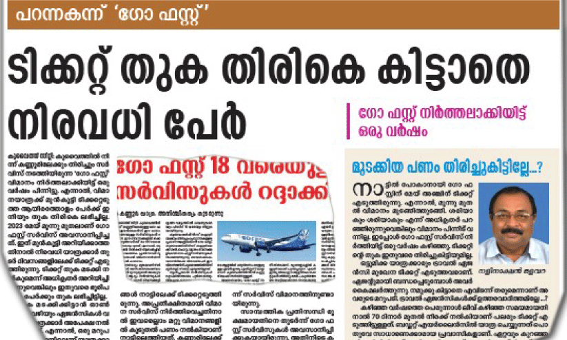 ഗോ ഫസ്റ്റ് ടിക്കറ്റ് തുക കിട്ടാനുള്ളവർ ഒരുമിക്കുന്നു