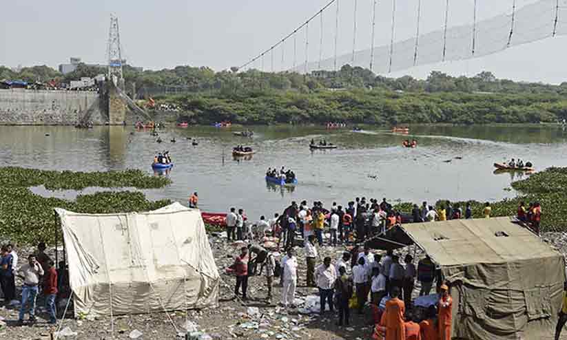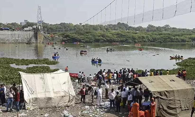 ഞായറാഴ്ചയാണ് ഗുജറാത്തിൽ തൂക്കുപാലം തകർന്നുവീണ് വൻ ദുരന്തം സംഭവിച്ചത്. 125ഓളം ആളുകൾ മാത്രം കയറാവുന്ന പാലത്തിൽ 500ലധികം പേർ കയറിയതാണ് അപകടകാരണമെന്നാണ് സൂചന. അടുത്തിടെ അറ്റകുറ്റപ്പണി പൂർത്തിയായി തുറന്നുകൊടുത്ത പാലമാണിത്.