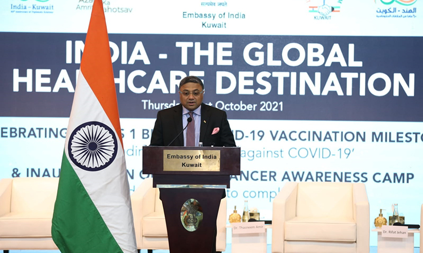 40 ആഴ്ച കൊണ്ടാണ് 100 കോടി ഡോസ് വാക്സിനേഷൻ നടത്തിയത്. ഡോക്ടർമാരും നഴ്സുമാരും ഉൾപ്പെടെ ആരോഗ്യജീവനക്കാരുടെ കഠിന പരിശ്രമം കൊണ്ടാണ് ഇത് സാധ്യമായത്. രാജ്യത്താകെ മൂന്നുലക്ഷത്തിലേറെ കുത്തിവെപ്പ് കേന്ദ്രങ്ങൾ പ്രവർത്തിക്കുന്നു. ഇതിൽ 74 ശതമാനവും ഗ്രാമപ്രദേശങ്ങളിലാണെന്നതും ശ്രദ്ധേയമാണെന്ന് അംബാസഡർ ചൂണ്ടിക്കാട്ടി. ഇന്ത്യക്കാരനെന്നതിൽ അഭിമാനിക്കാൻ കഴിയുന്ന നേട്ടമാണ് 100 കോടി ഡോസ് വാക്സിൻ കുറഞ്ഞകാലം കൊണ്ട് രാജ്യം വിതരണം ചെയ്തു എന്നതെന്ന് ഇന്ത്യൻ ഡോക്ടേഴ്സ് ഫോറം പ്രസിഡൻറ് ഡോ. അമീർ അഹ്മദ് പറഞ്ഞു. ഇന്ത്യയുടെ ഇൗ നേട്ടത്തെ കുവൈത്തിലെ മറ്റു രാജ്യക്കാരിലേക്ക് എത്തിക്കാൻ നാം ശ്രമിക്കണമെന്ന് അദ്ദേഹം അഭ്യർഥിച്ചു. വിദേശകാര്യമന്ത്രി ഡോ. എസ്. ജയ്ശങ്കറിെൻറ വിഡിയോ സന്ദേശം ചടങ്ങിൽ പ്രദർശിപ്പിച്ചു. എംബസി ഫസ്റ്റ് സെക്രട്ടറി ഫഹദ് അഹ്മദ് ഖാൻ സൂരി സ്വാഗതം പറഞ്ഞു.