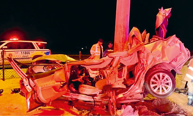 കുവൈത്ത് സിറ്റി: സിക്സ്ത് റിങ് റോഡിലുണ്ടായ കാറപകടത്തിൽ സ്വദേശി വനിത മരിച്ചു. നിയന്ത്രണം വിട്ട് വൈദ്യുതി വിളക്കുകാലിൽ ഇടിക്കുകയായിരുന്നു. ആഭ്യന്തര മന്ത്രാലയത്തിന്റെ ഓപറേഷൻ റൂമിൽ വിവരം ലഭിച്ചതനുസരിച്ച് അഗ്നിശമന വിഭാഗവും പാരാമെഡിക്കൽ ടീമും സ്ഥലത്തെത്തി രക്ഷാപ്രവർത്തനം നടത്തി.