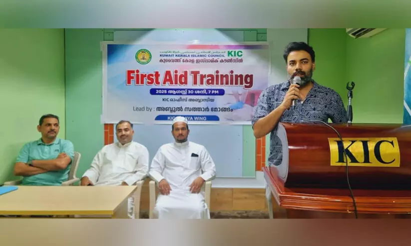 text_fieldsകെ.ഐ.സി ഫസ്റ്റ് എയ്ഡ് ബോധവത്കരണ ക്ലാസിൽ അബ്ദുൽ സത്താർ മോങ്ങം സംസാരിക്കുന്നു