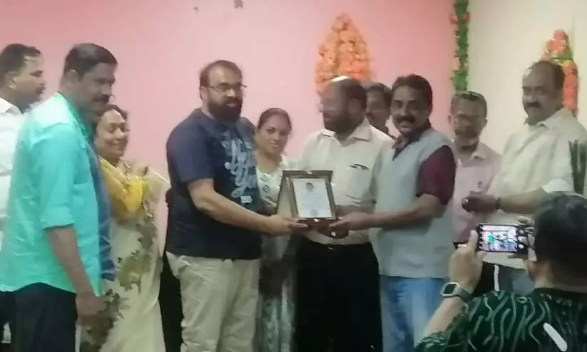 text_fieldsലാൽ കൃഷ്ണന് കെ.കെ.പി.എ ഉപഹാരം കൈമാറുന്നു