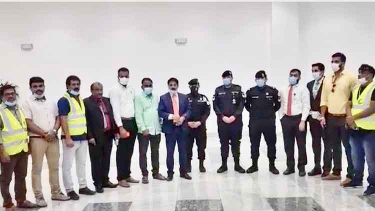 text_fieldsവിമാനത്താവളത്തിൽ യാത്രക്കാർക്ക് സേവനത്തിനെത്തിയ കെ.എം.സി.സി വളൻറിയർമാർ