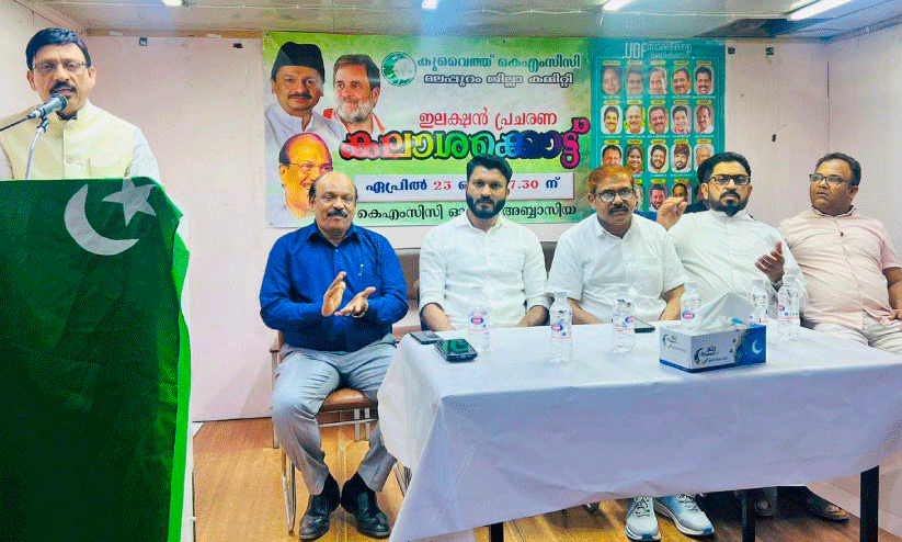 കുവൈത്ത് സിറ്റി: കുവൈത്ത് കെ.എം.സി.സി മലപ്പുറം ജില്ല കമ്മിറ്റി ലോക്സഭാ തെരഞ്ഞെടുപ്പ് പ്രചരണ കലാശക്കൊട്ട് നടത്തി. അബ്ബാസിയ കെ.എം.സി.സി ഓഫിസിൽ നടന്ന ചടങ്ങിൽ അജ്മൽ വേങ്ങര അധ്യക്ഷത വഹിച്ചു. കുവൈത്ത് ഒ.ഐ.സി.സി ആക്ടിങ് പ്രസിഡന്റ് സാമുവൽ ചാക്കോ ഉദ്ഘാടനം ചെയ്തു. കെ.എം.സി.സി സംസ്ഥാന ആക്ടിങ് ജനറൽ സെക്രട്ടറി ഫാസിൽ കൊല്ലം, ഖാലിദ് ഹാജി, ശാഫി കൊല്ലം, ഇല്ല്യാസ് വെന്നിയൂർ, പി.വി. ഇബ്രാഹീം, സുബൈർ കൊടുവള്ളി, ഷുഹൈബ് കണ്ണൂർ, ഒ.ഐ.സി.സി മലപ്പുറം ജില്ല വൈസ് പ്രസിഡന്റ് ലിബിൻ, ഫഹദ് പൂങ്ങാടൻ, ശറഫു കുഴിപ്പുറം, കെ.എസ്. തൽഹത്, റഷീദ് പയന്തോങ് എന്നിവർ സംസാരിച്ചു.