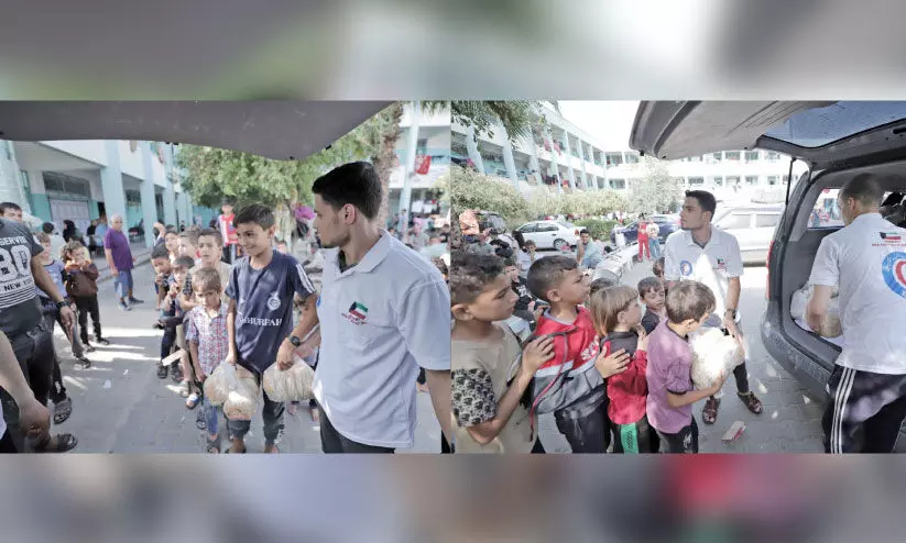 ദുരിതഭൂമിയിൽ ഭക്ഷണക്കിറ്റുമായി കെ.ആർ.സി.എസ്; ഗസ്സയുടെ വിശപ്പകറ്റി കുവൈത്ത്