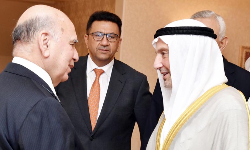 വിദേശകാര്യമന്ത്രി ശൈഖ് സലീം അബ്ദുല്ല അൽ ജാബിർ അസ്സബാഹും ഇറാഖ് വിദേശകാര്യമന്ത്രി ഫുആദ് ഹുസൈനും സംഭാഷണത്തിൽ