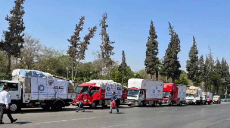ഗസ്സക്കുള്ള കുവൈത്തിെൻറ സഹായവസ്തുക്കൾ റഫ അതിർത്തിയിൽ