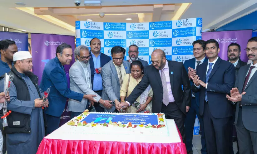 text_fieldsലുലു എക്സ്ചേഞ്ച് വാർഷികാഘോഷഭാഗമായി കേക്ക് മുറിക്കുന്നു