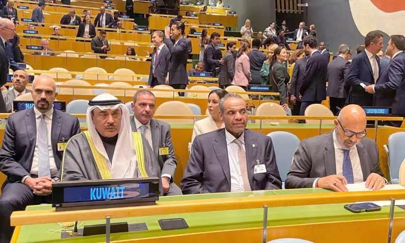 കുവൈത്ത് സിറ്റി: ഫലസ്തീൻ പ്രശ്നത്തിന് സമാധാനപരമായ പരിഹാരം കണ്ടെത്തലും ദ്വിരാഷ്ട്ര പരിഹാരം നടപ്പിലാക്കലും ലക്ഷ്യമിട്ട് ഐക്യരാഷ്ട്രസഭ ആസ്ഥാനത്ത് നടന്ന ഉച്ചകോടിയിൽ കുവൈത്ത് കിരീടാവകാശി ശൈഖ് സബാഹ് ഖാലിദ് അൽ ഹമദ് അൽ മുബാറക് അസ്സബാഹ് പങ്കെടുത്തു. സൗദി അറേബ്യയും ഫ്രാൻസുമാണ് പ്രത്യേക ഉച്ചകോടിക്ക് നേതൃത്വം നൽകിയത്. വിദേശകാര്യ മന്ത്രി അബ്ദുല്ല അലി അൽ യഹ്യയും കിരീടാവകാശിക്കൊപ്പം യോഗത്തിൽ ഭാഗമായി.