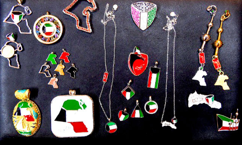 text_fieldsകുവൈത്ത് പതാകയുടെ നിറത്തിലും ഭൂപടത്തിന്റെ രൂപത്തിലുമുള്ള ആഭരണങ്ങൾ