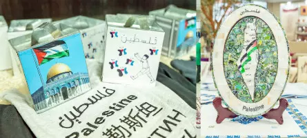 പരമ്പരാഗത ഫലസ്തീൻ തുണിത്തരങ്ങൾ, കരകൗശല വസ്തുക്കൾ എന്നിവ പ്രദർശനത്തിലെ പ്രധാന ആകർഷകങ്ങളാണ്. ഫലസ്തീൻ വനിതകളുടെ കൈകൊണ്ട് നിർമിച്ച ഇവ മനോഹരമാണ്. സമ്പൂർണ ഫലസ്തീൻ മാപ്പിന്റെ ചിത്രം, കുട്ടികൾ നിർമിച്ച മനോഹരമായ നിർമാണങ്ങൾ, കലാരൂപങ്ങളുടെയും മറ്റും ചിത്രത്തുന്നലുകൾ എന്നിവയും പ്രദർശനത്തിലുണ്ട്. സന്ദർശകർക്ക് ഇവ കാണാനും വാങ്ങിക്കാനും കഴിയും.