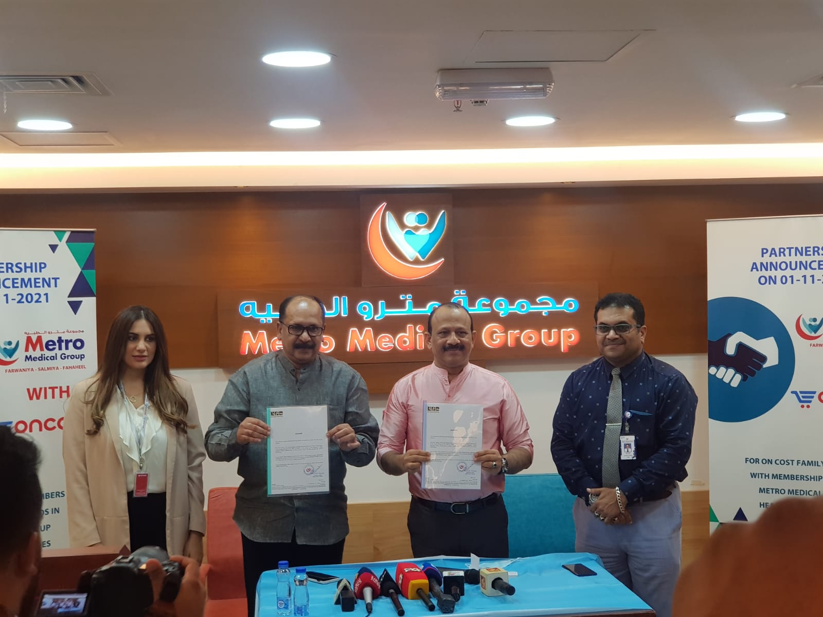 ഇതിന് പുറമെയുള്ള പ്രത്യേകാനുകൂല്യങ്ങൾ അതത് സമയങ്ങളിൽ പ്രഖ്യാപിക്കുമെന്ന് മെട്രോ മെഡിക്കൽ കെയർ ഗ്രൂപ്പ് ചെയർമാൻ മുസ്തഫ ഹംസ അറിയിച്ചു. മെട്രോയിൽ ചികിത്സ തേടുന്നവർക്ക് ഒാൺകോസ്റ്റിലും ഡിസ്കൗണ്ടും ആനുകൂല്യങ്ങളും നൽകുന്നത് പരിഗണിക്കുന്നുണ്ടെന്നും ഇതുസംബന്ധിച്ച പ്രഖ്യാപനം ഒരു മാസത്തിനകം നടത്തുമെന്നും ഒാൺകോസ്റ്റ് ചീഫ് ഒാപറേറ്റിങ് ഒാഫിസർ രമേശ് ആനന്ദദാസ് പറഞ്ഞു. സാൽമിയ സൂപ്പർ മെട്രോയിൽ നടന്ന വാർത്താസമ്മേളനത്തിൽ മെട്രോ മെഡിക്കൽ കെയർ ഗ്രൂപ്പ് ചെയർമാൻ മുസ്തഫ ഹംസ, ഒാൺകോസ്റ്റ് ചീഫ് ഒാപറേറ്റിങ് ഒാഫിസർ രമേശ് ആനന്ദദാസ് എന്നിവരെ കൂടാതെ മെട്രോ അഡ്മിൻ ആൻഡ് ബിസിനസ് ഡെവലപ്മെൻറ് മാനേജർ ഫൈസൽ ഹംസ, ഒാൺകോസ്റ്റ് മാർക്കറ്റിങ് മാനേജർ രിഹാം നാസർ എന്നിവരും സംബന്ധിച്ചു.