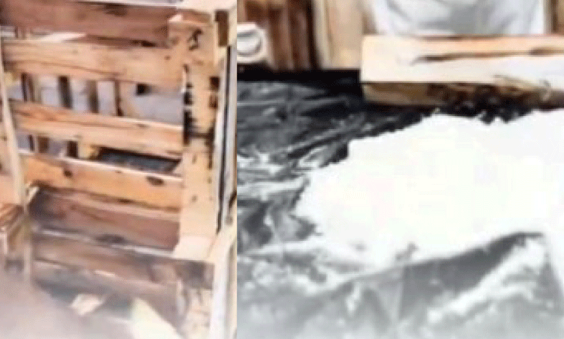 തണ്ണിമത്തൻ കൊണ്ടുവന്ന മരം കൊണ്ട് നിർമിച്ച കൂടിനെ മറയാക്കിയാണ് ലഹരി കടത്താൻ ശ്രമിച്ചത്. മരക്കഷ്ണങ്ങൾക്കുള്ളിൽ ലഹരി വസ്തുക്കൾ ഒളിപ്പിച്ച നിലയിലായിരുന്നു. പരിശോധന ഉദ്യോഗസ്ഥർ കൂട് അഴിച്ച് പരിശോധിച്ചപ്പോൾ ഒളിപ്പിച്ച നിലയിലുള്ള 25 കിലോ ഷാബു കണ്ടെത്തി.