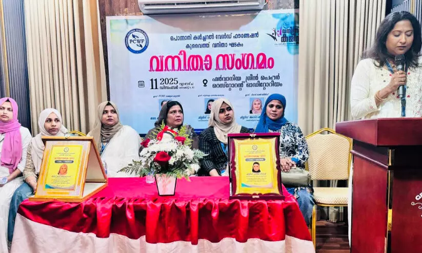 കുവൈത്ത് സിറ്റി: പൊന്നാനി താലൂക്ക് നിവാസികളുടെ ആഗോള കൂട്ടായ്മയായ പൊന്നാനി കൾചറൽ വേൾഡ് ഫൗണ്ടേഷൻ (പി.സി.ഡബ്ല്യു.എഫ്) കുവൈത്ത് വനിത ഘടകം ‘വനിതാ സംഗമം- 2025’ സംഘടിപ്പിച്ചു. ഫർവാനിയ ഗ്രീൻ പെപ്പർ ഫാമിലി റെസ്റ്റോറന്റ് ഓഡിറ്റോറിയത്തിൽ നടന്ന പരിപാടിയിൽ ഫെമിന അശറഫ് അധ്യക്ഷത വഹിച്ചു. വനിതാഘടകം പ്രസിഡന്റ് റുഖിയ ബീവി ഉദ്ഘാടനം ചെയ്തു.