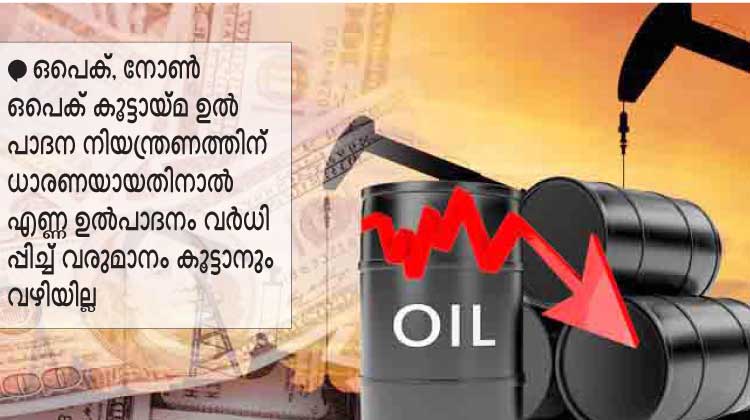 കോവിഡ്ഭീതി എന്ന് തീരുമെന്നോ സാമ്പത്തികവ്യവസ്ഥയും പെട്രോളിയം വിലയും എന്ന് തിരിച്ചുകയറുമെന്നോ ഒരു ധാരണയുമില്ല. ഒപെക്, നോൺ ഒപെക് കൂട്ടായ്മ ഉൽപാദന നിയന്ത്രണത്തിന് ധാരണയായതിനാൽ എണ്ണ ഉൽപാദനം വർധിപ്പിച്ച് വരുമാനം കൂട്ടാനും വഴിയില്ല. മാത്രമല്ല, ഉൽപാദന നിയന്ത്രണമില്ലെങ്കിൽ വില പിന്നെയും താഴും.