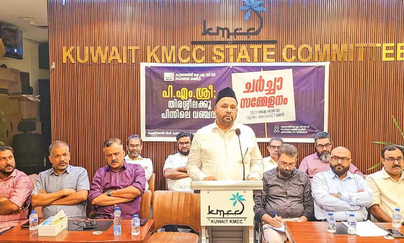 കുവൈത്ത് സിറ്റി: ‘പി.എം ശ്രീ -തിരശീലക്കു പിന്നിലെ വഞ്ചന' എന്ന വിഷയത്തിൽ കെ.എം.സി.സി ചർച്ച സമ്മേളനം സംഘടിപ്പിച്ചു. ഫർവാനിയയിലെ കെ.എം.സി.സി ഓഫിസിൽ നടന്ന ചർച്ചയിൽ വിവിധ സംഘടന പ്രതിനിധികൾ പങ്കെടുത്തു.