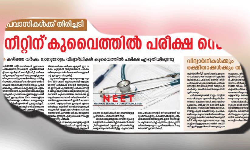വിദ്യാർഥികൾക്ക് ആശ്വാസം; നീറ്റ് പരീക്ഷ കേന്ദ്രം കുവൈത്തിൽ പുനഃസ്ഥാപിച്ചു
