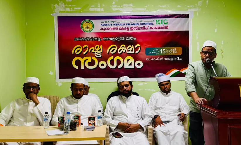 കുവൈത്ത് സിറ്റി: കുവൈത്ത് കേരള ഇസ്ലാമിക് കൗൺസിൽ (കെ.ഐ.സി) കേന്ദ്ര കമ്മിറ്റി നേതൃത്വത്തില് സ്വാതന്ത്ര്യദിനത്തിൽ ‘മതേതരത്വം ഇന്ത്യയുടെ മതം’ എന്ന പ്രമേയത്തിൽ രാഷ്ട്രരക്ഷസംഗമം സംഘടിപ്പിച്ചു. അബ്ബാസിയ കെ.ഐ.സി ഓഡിറ്റോറിത്തിൽ നടന്ന സംഗമത്തിൽ പ്രസിഡന്റ് അബ്ദുൽ ഗഫൂർ ഫൈസി അധ്യക്ഷതവഹിച്ചു. കെ.ഐ.സി ജനറൽ സെക്രട്ടറി സൈനുൽ ആബിദ് ഫൈസി ഉദ്ഘാടനം ചെയ്തു. വൈസ് പ്രസിഡന്റ് ഇസ്മായിൽ ഹുദവി പ്രാർഥന നിർവഹിച്ചു.