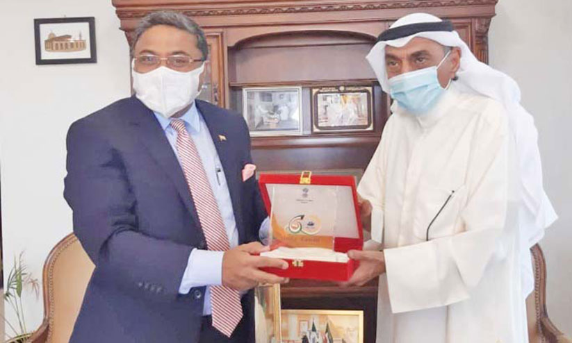 ഇന്ത്യൻ അംബാസഡർ സിബി ജോർജ് കുവൈത്ത് വിദേശകാര്യ സഹമന്ത്രി ഫഹദ് അഹ്മദ് അൽ അവദിയുമായി കൂടിക്കാഴ്ച നടത്തുന്നു