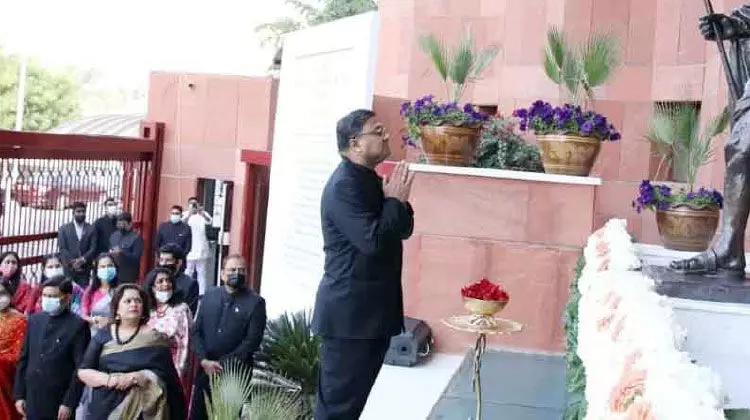 text_fieldsഇന്ത്യൻ എംബസിയിൽ റിപ്പബ്ലിക് ദിനാഘോഷത്തോടനുബന്ധിച്ച് അംബാസഡർ സിബി ജോർജ് ഗാന്ധി പ്രതിമക്ക് മുന്നിൽ ആദരമർപ്പിക്കുന്നു