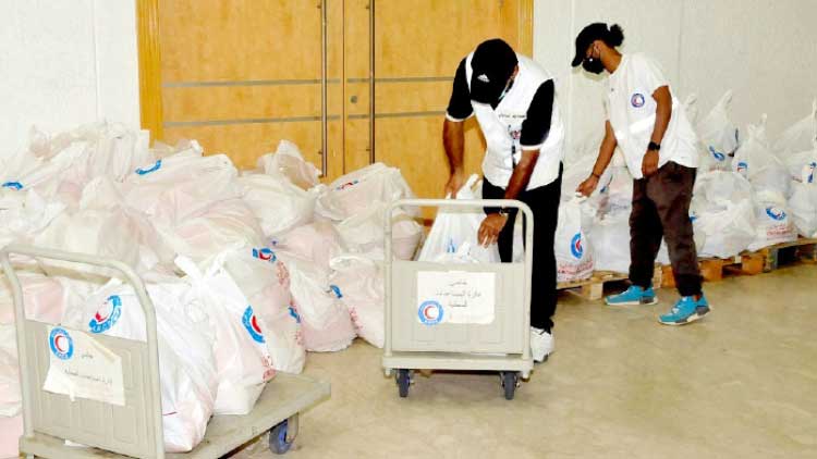കുവൈത്ത് റെഡ് ക്രെസൻറ് സൊസൈറ്റി ഭക്ഷണക്കിറ്റുകൾ വിതരണത്തിന് തയാറാക്കുന്നു