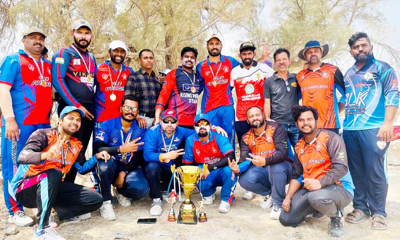text_fieldsട്വന്റി 20 ക്രിക്കറ്റ് ടൂർണമെന്റിൽ ജേതാക്കളായ റെഡ് ആരോസ് ടീം