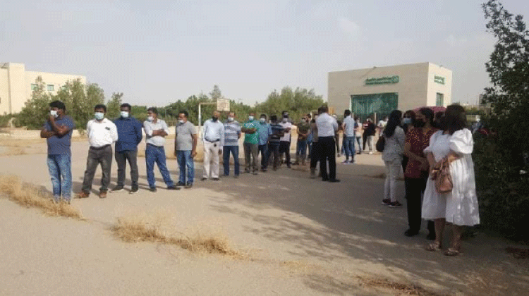 സലൂൺ ജീവനക്കാർ കോവിഡ് വാക്സിൻ സ്വീകരിക്കാൻ കാത്തുനിൽക്കുന്നു