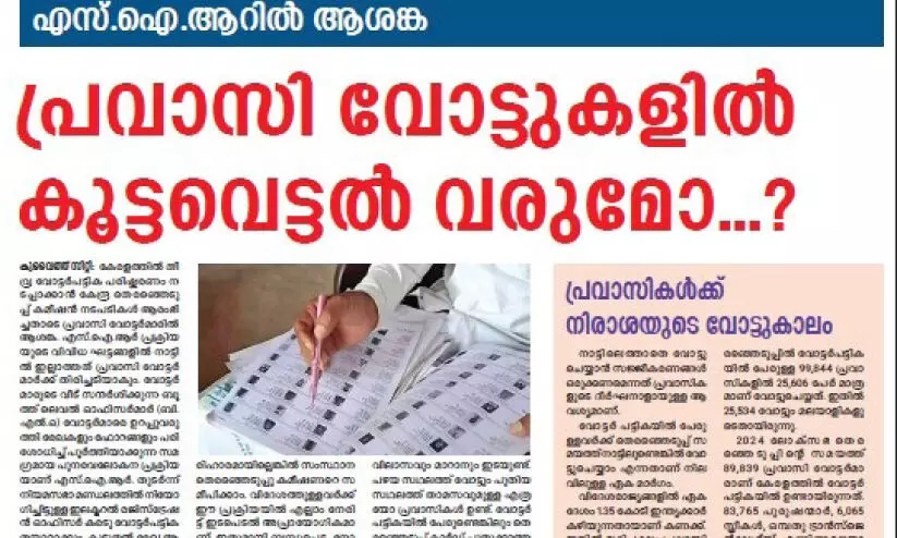 വോട്ടവകാശം നഷ്ടപ്പെടുമോ? എസ്.ഐ.ആർ: ആശങ്ക രേഖപ്പെടുത്തി പ്രവാസി സംഘടനകൾ