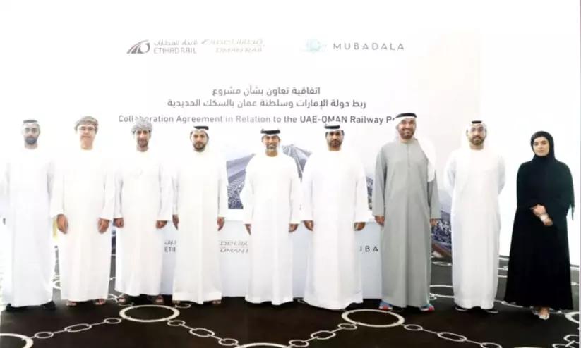 ഒമാൻ ആൻഡ് ഇത്തിഹാദ് റെയിൽ കമ്പനിയുടെ ചീഫ് എക്സിക്യൂട്ടിവ് അഹമ്മദ് അൽ ഹാഷെമിയും മുബാദലയുടെ യു.എ.ഇ ഇൻവെസ്റ്റ്മെന്റ് പ്ലാറ്റ്ഫോമിലെ യു.എ.ഇ ഇൻഡസ്ട്രീസ് യൂനിറ്റ് എക്സിക്യൂട്ടിവ് ഡയറക്ടർ ഡോ. ബഖീത് അൽ കത്തീരിയുമാണ് പങ്കാളിത്ത കരാറിൽ ഒപ്പുവെച്ചത്. ഒമാൻ-ഇത്തിഹാദ് റെയിൽ കമ്പനിയുടെ ചെയർമാനും ഊർജ-അടിസ്ഥാന സൗകര്യ മന്ത്രിയുമായ സുഹൈൽ ബിൻ മുഹമ്മദ് ഫറജ് ഫാരിസ് അൽ മസ്റൂയി, ഒമാൻ, ഇത്തിഹാദ് റെയിൽ ഡയറക്ടർ ബോർഡ് അംഗങ്ങൾ എന്നിവർ സംബന്ധിച്ചു. ഒമാൻ, ഇത്തിഹാദ് റെയിൽ കമ്പനിയുടെ സി.ഇ.ഒ അഹമ്മദ് അൽ മുസാവ അൽ ഹാഷെമിയും മുബാദലയുടെ യു.എ.ഇ ഇൻവെസ്റ്റ്മെന്റ് പ്ലാറ്റ്ഫോമിലെ യു.എ.ഇ ഇൻഡസ്ട്രീസ് യൂനിറ്റ് എക്സിക്യൂട്ടിവ് ഡയറക്ടർ ഡോ. ബഖീത് അൽ കത്തീരിയും ധാരണപത്രത്തിൽ ഒപ്പുവെച്ചു.