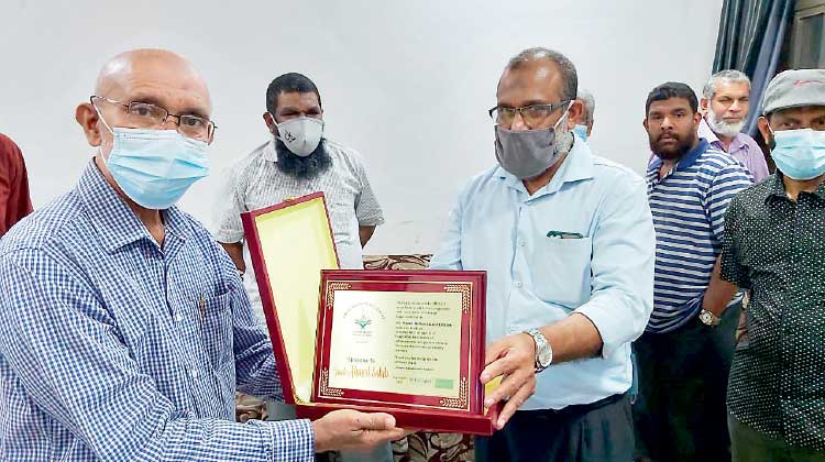 text_fieldsസി.എം.കെ. അഹമ്മദിന് യാത്രയയപ്പ് ചടങ്ങിൽ ഉപഹാരം നൽകുന്നു