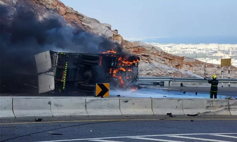 കൂട്ടിയിടിയിൽ ട്രക്കിന് തീ പിടിക്കുകയായിരിന്നു. അപകടം നടന്നയുടൻ സ്ഥലത്തെത്തിയ സിവിൽ ഡിഫൻസ് ആൻഡ് ആംബുലൻസ് അതോറിറ്റിയിലെ അഗ്നിശമന സേനാംഗങ്ങൾ തീ നിയന്ത്രണ വിധേയമാക്കുകയും മറ്റ് രക്ഷാ പ്രവർത്തനങ്ങൾ നടത്തുകയും ചെയ്തു.