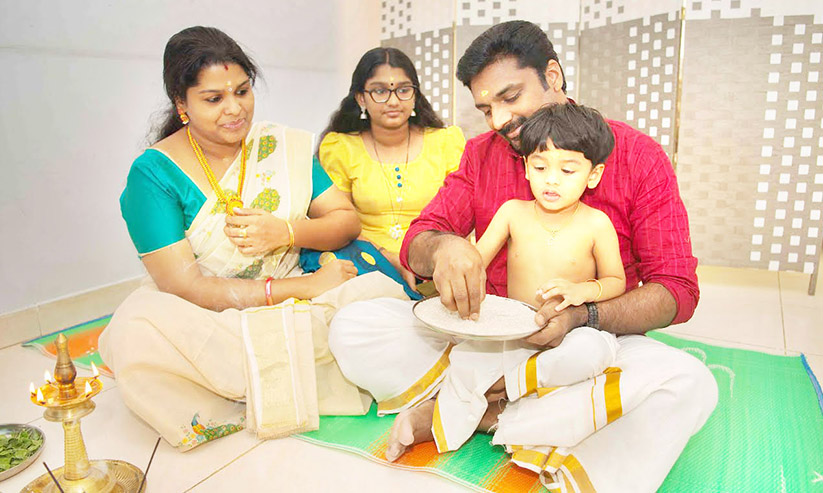 മാതാപിതാക്കൾതന്നെയാണ് ചടങ്ങു നടത്തിയത്. ദക്ഷിണേന്ത്യൻ സംസ്ഥാനക്കാർ നവരാത്രി ആഘോഷിച്ചു. വീടുകളിൽ വളരെ നേരത്തെതന്നെ 'ബൊമ്മക്കൊലു' ഒരുക്കിയിരുന്നു.