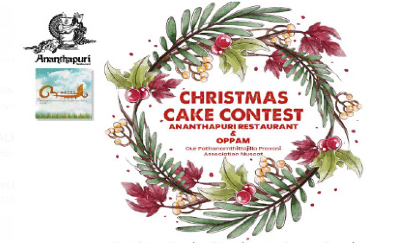 മസ്കത്ത്: അനന്തപുരി ഹോട്ടലും പത്തനംതിട്ട പ്രവാസികളുടെ കൂട്ടായ്മയായ ‘ഒപ്പം’ ഫാമിലി ഗ്രൂപ്പും സംയുക്തമായി പുതുവത്സരത്തെയും ക്രിസ്മസിനെയും വരവേൽക്കുന്നതിന് ’ക്രിസ്മസ് കേക്ക് കോണ്ടസ്റ്റ്’ സംഘടിപ്പിക്കും.