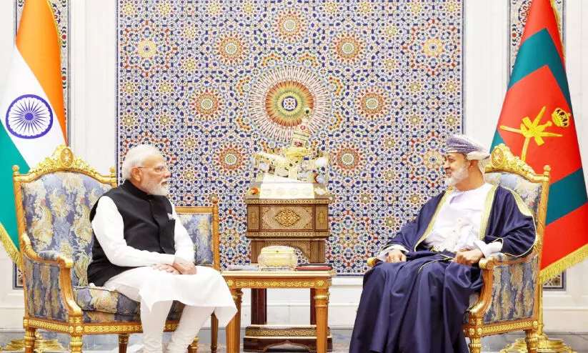 text_fieldsഇന്ത്യൻ പ്രധാനമന്ത്രി നരേന്ദ്രമോദി ഒമാൻ സന്ദർശന വേളയിൽ സുൽത്താൻ ഹൈതം ബിൻ