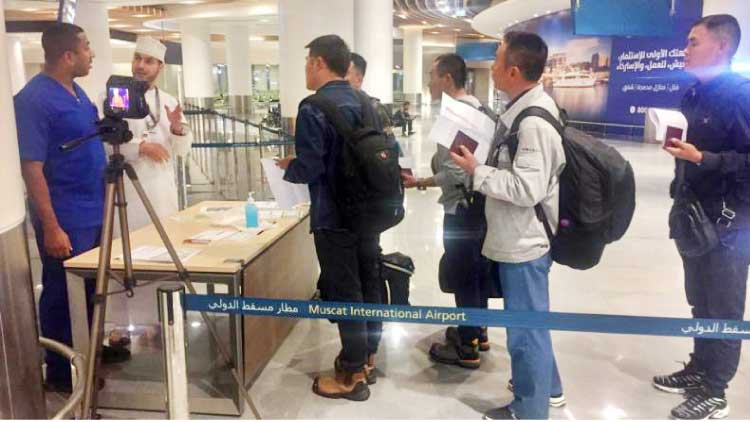 അന്താരാഷ്ട്ര മാനദണ്ഡങ്ങൾ പ്രകാരമുള്ള പരിശോധനാ നടപടിക്രമങ്ങളാണ് പിന്തുടരുന്നത്. ലബോറട്ടറി പരിശോധനക്കുള്ള സാമ്പിളുകൾ അതിർത്തികളിലെ ലാബുകളിൽ എടുക്കില്ലെന്നും ആരോഗ്യ പരിചരണ സ്ഥാപനങ്ങളിലേക്ക് അയക്കുകയാണ് ചെയ്യുകയെന്നും ആരോഗ്യമന്ത്രാലയം അറിയിച്ചു. കൊറോണ ബാധ ഉണ്ടാകുന്ന പക്ഷം നേരിടുന്നതിനുള്ള മാർഗങ്ങളെ കുറിച്ച പരിശീലനം നൽകുന്നതിന് ആരോഗ്യമന്ത്രാലയം ഉദ്യോഗസ്ഥർക്കായി കഴിഞ്ഞദിവസം ശിൽപശാല നടത്തി. ചൈനയിൽ കുടുങ്ങിയ ഒമാനി വിദ്യാർഥികളെ പ്രത്യേക വിമാനത്തിൽ കഴിഞ്ഞദിവസം ഒമാനിൽ തിരികെയെത്തിക്കുകയും ചെയ്തു. അതിനിടെ, കൊറോണ ഭീതി പടർന്നതിനെ തുടർന്ന് മുഖാവരണങ്ങൾ ആളുകൾ വ്യാപകമായി വാങ്ങിക്കൂട്ടുന്നതായി റിപ്പോർട്ടുകളുണ്ട്. പല ഫാർമസികളിലും മുഖാവരണങ്ങളുടെ സ്റ്റോക് ഇല്ല. കുറഞ്ഞ വിലയും ഉപയോഗിക്കാനുള്ള എളുപ്പവും കാരണം സർജിക്കൽ മാസ്ക് ആണ് കൂടുതൽ പേരും വാങ്ങുന്നത്. പലരും ബോക്സ് കണക്കിനാണ് വാങ്ങുന്നത്. ഇത്തരം മുഖാവരണങ്ങൾ പൂർണമായും രോഗത്തെ പ്രതിരോധിക്കില്ലെങ്കിലും തുമ്മുേമ്പാഴും മറ്റും പുറത്തുവരുന്ന സ്രവങ്ങളിൽനിന്ന് ഒരു പരിധി വരെ സംരക്ഷണം നൽകും.