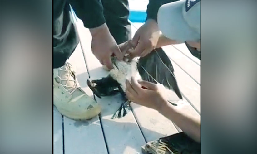 text_fieldsലൈൻ ചുറ്റിപ്പിണഞ്ഞ് അവശനിലയിലായ പക്ഷിയെ അധികൃതർ പരിചരിക്കുന്നു