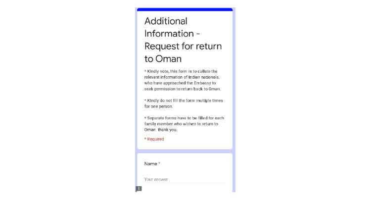 മസ്കത്ത്: യാത്രവിലക്കു മൂലം ഒമാനിലേക്കു വരാനാകാതെ ഇന്ത്യയിൽ കുടുങ്ങിയവരെ തിരിച്ചെത്തിക്കുന്നതിന് ഇന്ത്യൻ എംബസി രജിസ്ട്രേഷൻ ആരംഭിച്ചതായി സമൂഹമാധ്യമങ്ങളിൽ വ്യാപക പ്രചാരണം. ഇങ്ങനെ കുടുങ്ങിയവർ വിവരങ്ങൾ രജിസ്റ്റർ ചെയ്യണമെന്നാണ് എംബസിയുടെ പേരിൽ പ്രചരിക്കുന്ന സന്ദേശത്തിലുള്ളത്. സന്ദേശത്തിന് ഒപ്പമുള്ള ലിങ്കിൽ പോയി ഗൂഗ്ൾ ഫോം പൂരിപ്പിച്ചുനൽകുകയാണ് വേണ്ടത്. പേര്, പാസ്പോർട്ട് നമ്പർ, െറസിഡൻറ് കാർഡ് നമ്പർ, വിസ കാലാവധി, വിസ ഇനം, ഒമാനിൽ ബന്ധപ്പെടേണ്ട നമ്പർ, ഇ-മെയിൽ െഎഡി, അടിയന്തരമായി ഒമാനിൽ തിരിച്ചെത്താനുള്ള കാരണം തുടങ്ങിയ വിവരങ്ങളാണ് നൽകേണ്ടത്.