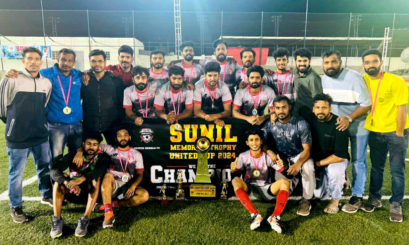 മസ്ക്കത്ത്: യുനൈറ്റഡ് കേരള സംഘടിപ്പിച്ച സുനിൽ മെമ്മോറിയൽ യുനൈറ്റഡ് കപ്പ് നാലാമത് എഡിഷനിൽ എഫ്.സി കേരള ജേതാക്കളായി. ഫൈനലിൽ ഏകപക്ഷീയമായ രണ്ടു ഗോളുകൾക്ക് പ്രോസോൺ എഫ്.സിയെയാണ് പരാജയപ്പെടുത്തിയത്. 16 ടീമുകൾ നാലു ഗ്രൂപ്പുകളായി മത്സരിച്ച ടൂർണമെന്റിൽ മൂന്നാം സ്ഥാനക്കാരായി എഫ്.സി ഗോവയും, നാലാം സ്ഥാനം എഫ്.സി നിസ്വയും കരസ്ഥമാക്കി. ഒമാനിലും നാട്ടിലും ഒരുപാട് ക്ലബുകൾക്കും കേരള ജൂനിയർ ടീമിലും കളിച്ചിട്ടുള്ള സുനിലിന്റെ ഓർമക്കായായിരുന്നു മത്സരം സംഘടിപ്പിച്ചത്. നാട്ടിൽ കളിക്കളത്തിൽ കുഴഞ്ഞു വീണാണ് സുനിൽ മരിച്ചത്. ചടങ്ങിൽ സുനിലിന്റെ കുടുംബവും സന്നിഹിതരായിരുന്നു. സുനിലിന്റെ മകൻ ദേവനാണ് കിക്കോഫ് നിർവഹിച്ചത്. എഫ്.സി കേരളയുടെ അർഷാദ് ടോപ്സ്കോററായും ഡിഫൻഡറായി റസാഖിനെയും പ്രോസോൺ എഫ്.സിയുടെ ഫാസിൽ മികച്ച ഗോൾ കീപ്പറായും മികച്ച സ്ട്രൈക്കറായി ഫാരിസിനെയും തെരഞ്ഞെടുത്തു. എഫ്.സി കേരളയുടെ ജൈസലാണ് ഫൈനലിലെ മികച്ച താരം