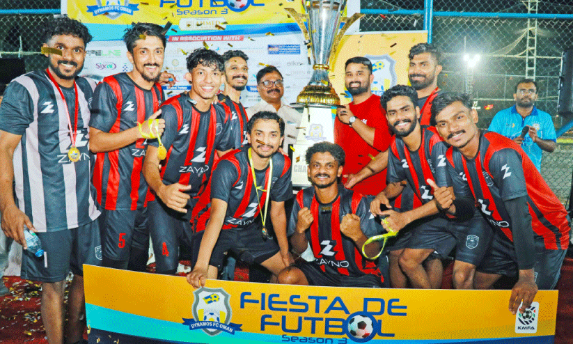 മസ്കത്ത്: ഡൈനാമോസ് എഫ്.സി നടത്തിയ ഫിയസ്റ്റ ഡി ഫുട്ബാള് സീസൺ മൂന്നിൽ സയനോ എഫ്.സി സീബ് ജേതാക്കളായി. കലാശ പോരാട്ടത്തില് ടോപ് ടെന് ബര്കക്കെതിരെ മുഴുവന് സമയത്തും സമനില ആയതിനെ തുടര്ന്ന് പെനാൽറ്റിയിലൂടെയാണ് വിജയികളെ കണ്ടെത്തിയത്. മസ്കത്ത് ഹാമ്മേഴ്സ് മൂന്നാം സ്ഥാനവും ബ്ലാക് യുനൈറ്റഡ് നാലാം സ്ഥാനവും കരസ്ഥമാക്കി. ഒമാനിലെ പ്രമുഖ 16 ടീമുകളെ നാല് ഗ്രൂപ്പുകളാക്കി തരം തിരിച്ചാണ് മത്സരങ്ങള് സംഘടിപ്പിച്ചത്.