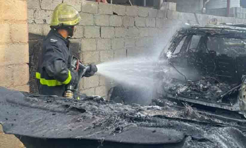 അഗ്നിരക്ഷാ സേനാംഗങ്ങൾ തീയണക്കുന്നു