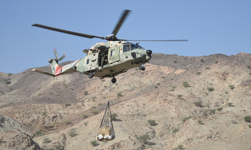 ഒമാനിലെ റോയൽ എയർഫോഴ്സ് ഹെലികോപ്ടറിലൂടെ സിയ ഗ്രാമത്തിലേക്ക് ഭക്ഷ്യവസ്തുക്കൾ എത്തിക്കുന്നു